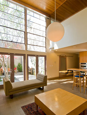 The program called for the conversion of the original Danziger Studio designed by the partnership of Frank O. Gehry, FAIA and Gregory Walsh, FAIA in 1965 into a Joint Living and Work Quarters (Artist-in-Residence) for a couple with a young son. The conversion and renovation transformed two existing offices into bedrooms, gutted and replaced the existing bath and closet area, preserved and renovated the existing kitchen with disabled access upgrades, enlarged and reworked the existing front courtyard while preserving an existing Crape Myrtle tree, created a motor court at the rear and renovated or upgraded many other original features.